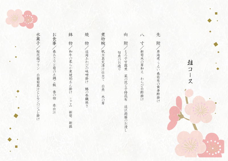 四季を感じられる花や紋様をモチーフにした日本料理向けにデザインしたお品書き