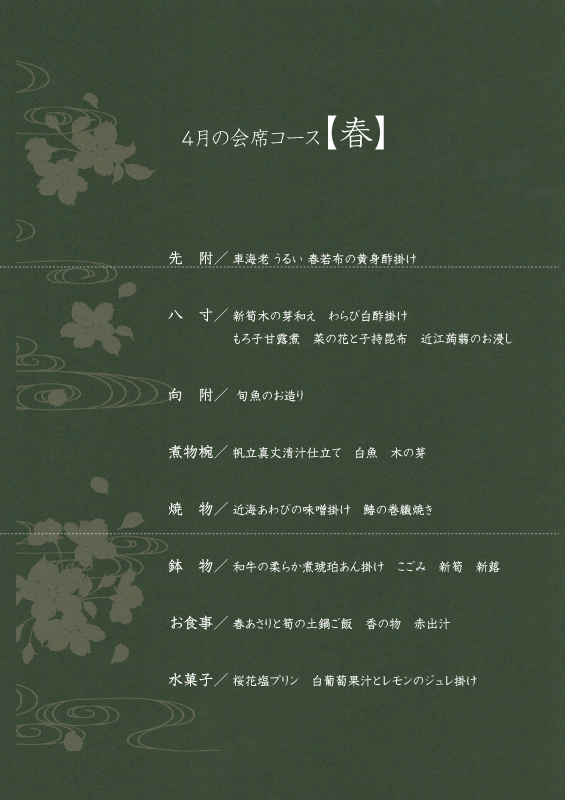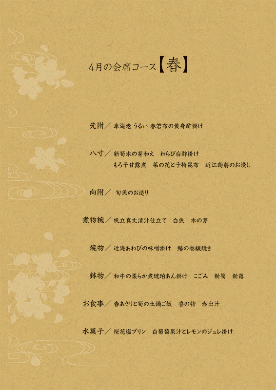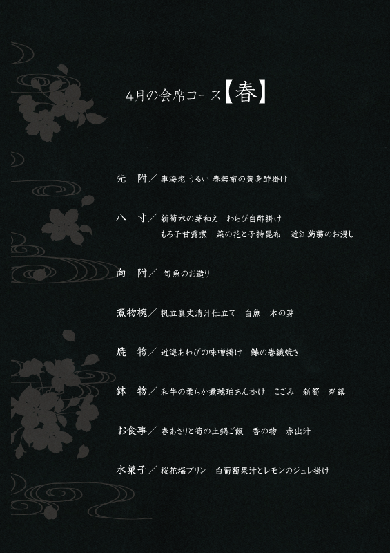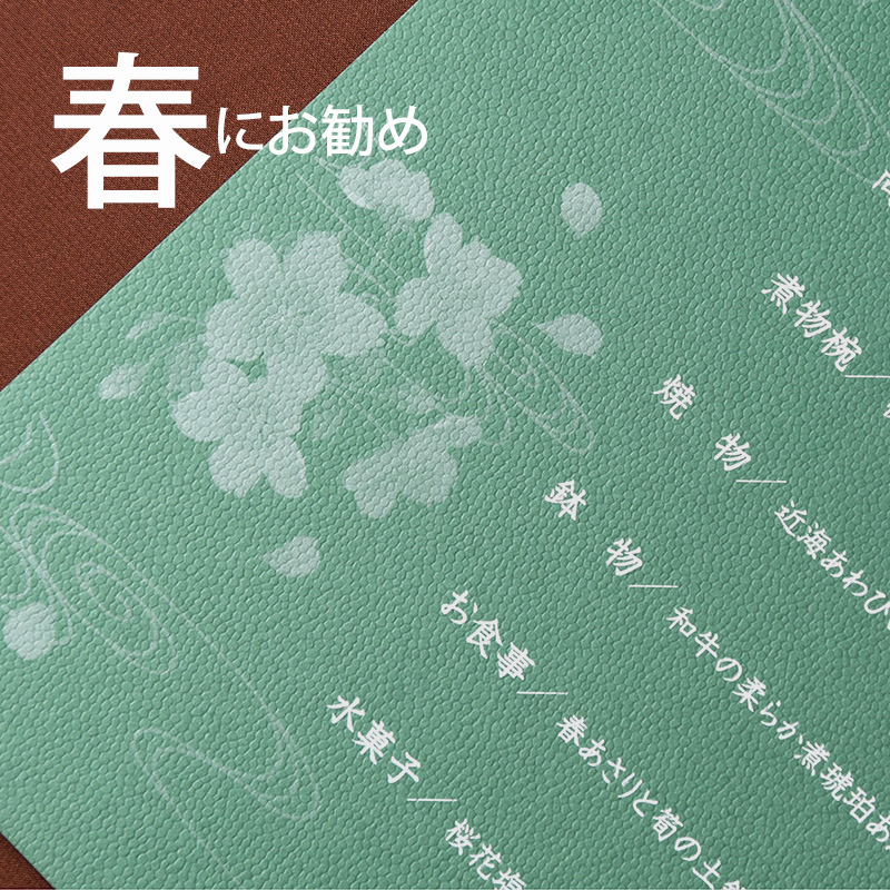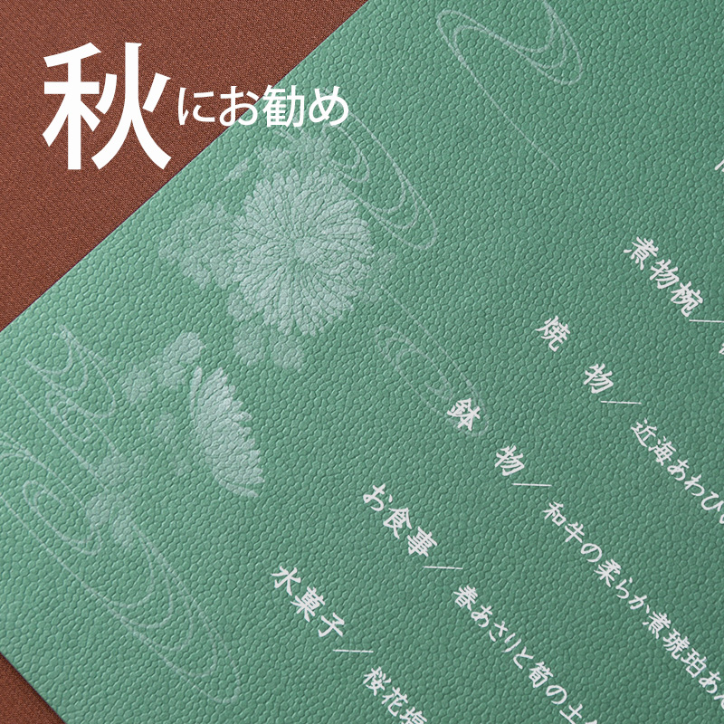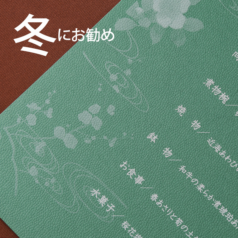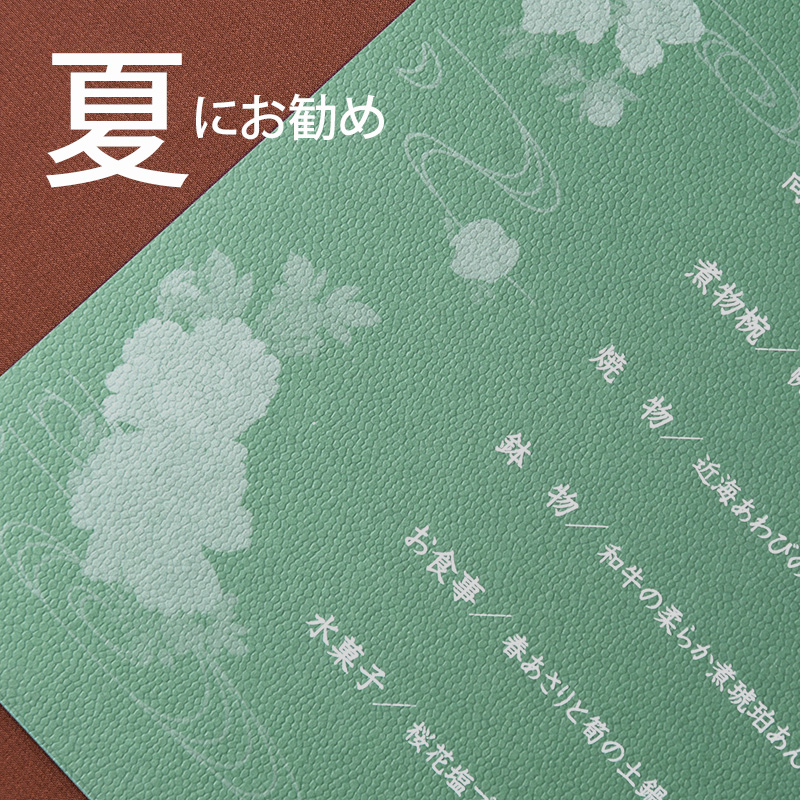季節の花々の繊細なシルエットが伝統的で格式高い雰囲気を醸し出す高級料亭が使うのによく似合うお品書き